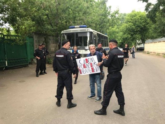 Она написала, что, когда Рыклин развернул плакат, его окружили шесть сотрудников полиции. По словам Гордон, мужчину увезли в отдел полиции по району Хорошево-Мневники.