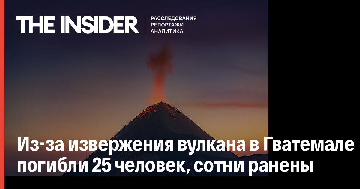 Из-за извержения вулкана Фуэго в Гватемале погибли по меньшей мере 25 человек, включая троих детей, еще более 300 получили ранения. Об этом сообщает Guardian со ссылками на гватемальские власти.