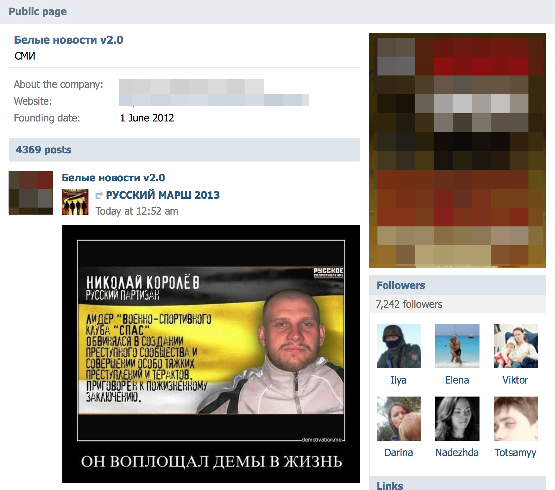 Поздно вечером 26 ноября 2014 года петербуржец Владимир Рязанцев сидел перед компьютером, на экране была открыта страница паблика «Белые новости v2.0» (сейчас удален). Владимир был одним из администраторов сообщества с несколькими тысячами подписчиков, а под его именем в списке контактов стояла пометка «Духовный лидер». Тем вечером он решил написать пост про своего старого знакомого и единомышленника Дениса Григорука — оба они и разделяют ультраправые взгляды и сочувствуют, в частности, неонацистскому сообществу «Реструкт».