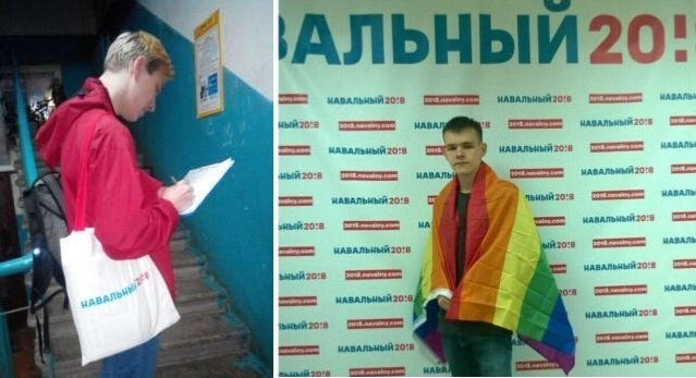 Даниил Биляк пожелал интеллекта с практикой набираться. Заодно попозже надёжно избежать пополнения в ряды разорённой украинской армии. Россия по душевности своей его впустила через порог. Наивная Марий Эл халатно посадила за парту РМТ и обеспечила удобствами. Парень предсказуемо забил на учёбу. Соразмерно. Его турнули. Ну, вроде бы у-сё, не срослось и не сложилось. Перепоступай или возвращайся домой. Ан, нет! В политику ринулся. И ещё как круто пролез. Вначале он бегал по подъездам Йошкар-Олы, стучался в двери и раскидывал агитки. Догадайтесь, с кем он шастал по многоквартиркам? Правильно, с другим типичным членом йошкар-олинского штаба Навального. С Валентином Беляевым. С тем самым ЛГБТ-активистом, давеча порхавшим по помещению штаба с радужным знаменем и настойчиво орущим на камеру "детям надо объяснять, что интим между мужчинами это нормально!". Между прочим, обнаружить в кустарных условиях их коллективно-парный движ по квартирам с листовками удалось благодаря резонансному видеоролику Валентина и одной из фотографий залётного Даниила – на заднем плане цвет и деформация стен абсолютно идентичны ?