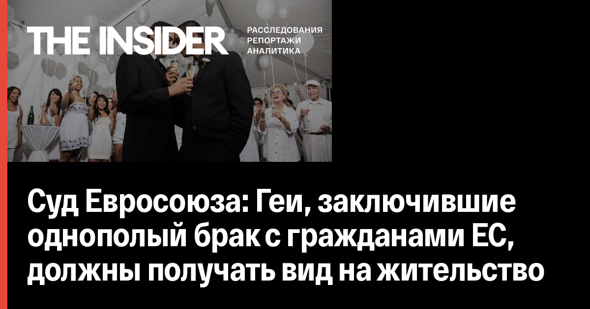 Суд Евросоюза: Геи, заключившие однополый брак с гражданами ЕС, должны получать вид на жительство