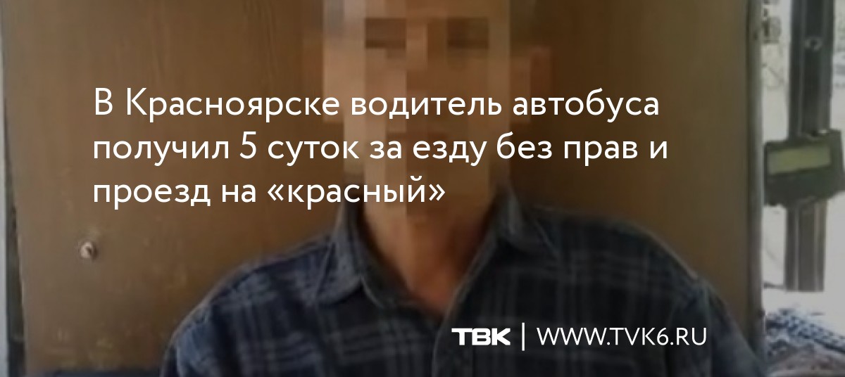 В Красноярске водитель автобуса получил 5 суток за езду без прав и проезд на «красный»