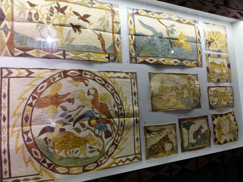 Стекло отделяет посетителей от масок индейцев племени мирити, от деревянных скульптур, ритуальных корон, ожерелий... Картины на древесной бумаге янчама сопровождаются комментариями, фотографиями и видеофильмами. Изображения, рассказывающие о повседневной и мистической жизни племени тикуна, созданы при помощи натуральных красок. "Полностью экологичны!" – подчеркивает один из местных просветителей.