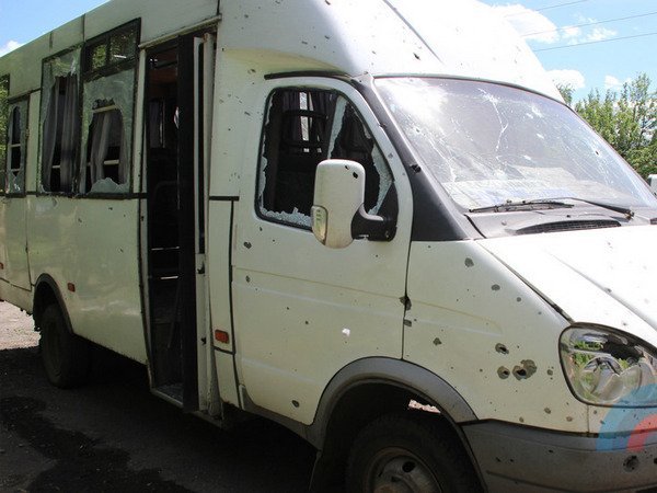 Как сообщает «Луганский информационный центр», микроавтобус был обстрелян в поселке Голубовское.