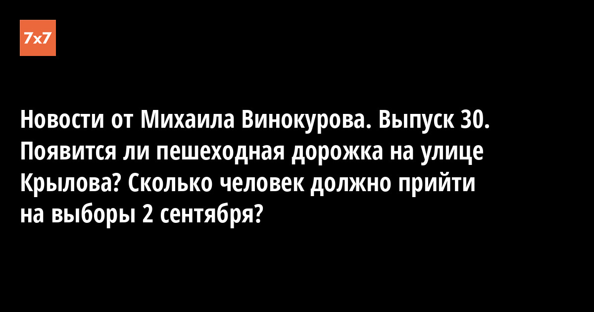Новости от Михаила Винокурова. Выпуск 30. Появится ли пешеходная дорожка на улице Крылова? Сколько человек должно прийти на выборы 2 сентября?