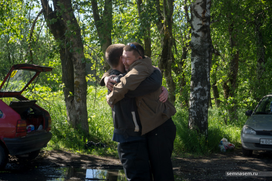 Спустя пять минут после выхода заключенного ворота колонии закрываются. На поляне перед воротами стоят трое мужчин, выходцев с Кавказа. Вахапов, не стесняясь, подходит к ним: