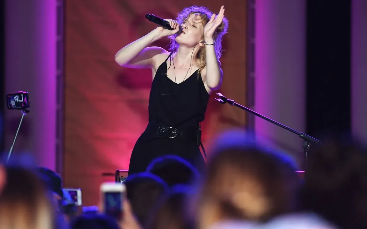 Не знаю уж, кто ей пишет тексты, говорят, что Нойс МС, но свечку никто не держал, может быть, и сама. Просто обращу внимание на метаморфозу, которая произошла с Монеточкой. Начинала она с подростковых приколов, типа «Мама, я не зигую» («Не звони в полицию, я не оппозиция») и «Жаль, что твои родители не чайлдфри». Играла одним пальцем на дешевом синтезаторе, пела писклявым голосом, выходила на сцену чуть ли не в китайском адидасе. И вообще являла собой антитезу гламурным группам нулевых типа «БИ-2», с их костюмированными стадионными шоу, богатыми аранжировками и горой аппаратуры на сцене: