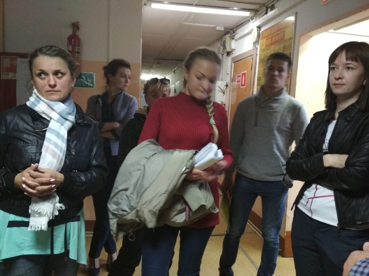 Владимир, заместитель директора по внеучебной работе, ведет всех на седьмой этаж. В комнатах, которые предлагают девушкам, живут парни-студенты, говорят, что им только что объявили, что их переселяют. Владимир просит девушек записать все требования и претензии сейчас, задать вопросы:
