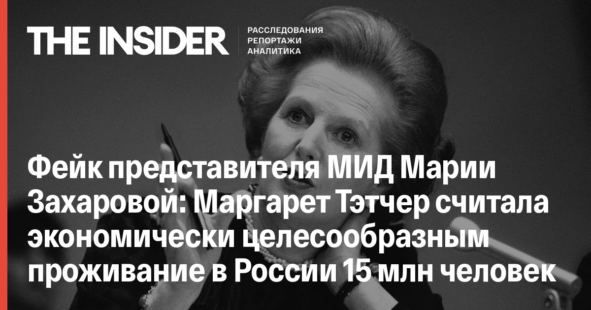 Фейк представителя МИД Марии Захаровой: Маргарет Тэтчер считала экономически целесообразным проживание в России 15 млн человек