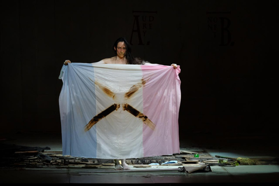 — Не в этот раз. То есть я все равно работаю с символами, но поперек, против, навстречу им. В спектакле есть все символические атрибуты мощи и величия Жанны д'Арк — меч, конь, флаг. Все это кем только не использовалось, французскими националистами не в последнюю очередь. Фашисты Ле Пена каждый год собираются в Орлеане под статуей Жанны. Они ее просто присвоили себе. А она принадлежит нам. Так вот, вся эта символика в опере не работает, каждый из атрибутов проблематичен. Лошадь умирает. Меч не рубит. Флаг перечеркнут и опален. И зрители должны осознать это. Если это не символ, то что? Ведь символ может быть обращен и против нас. Я хотел показать теневую сторону каждого из символов, принадлежавших Жанне. Это и есть костер. Это и есть огонь.