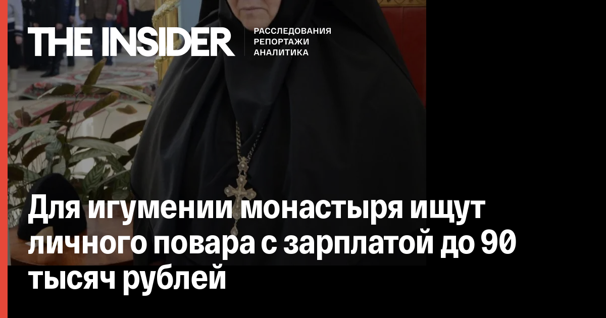 Для игумении монастыря ищут личного повара с зарплатой до 90 тысяч рублей