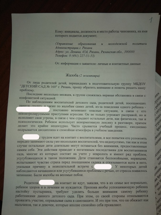 Но таких заявлений надо несколько, чтобы поставить мальчика на учёт и спровадить из сада.