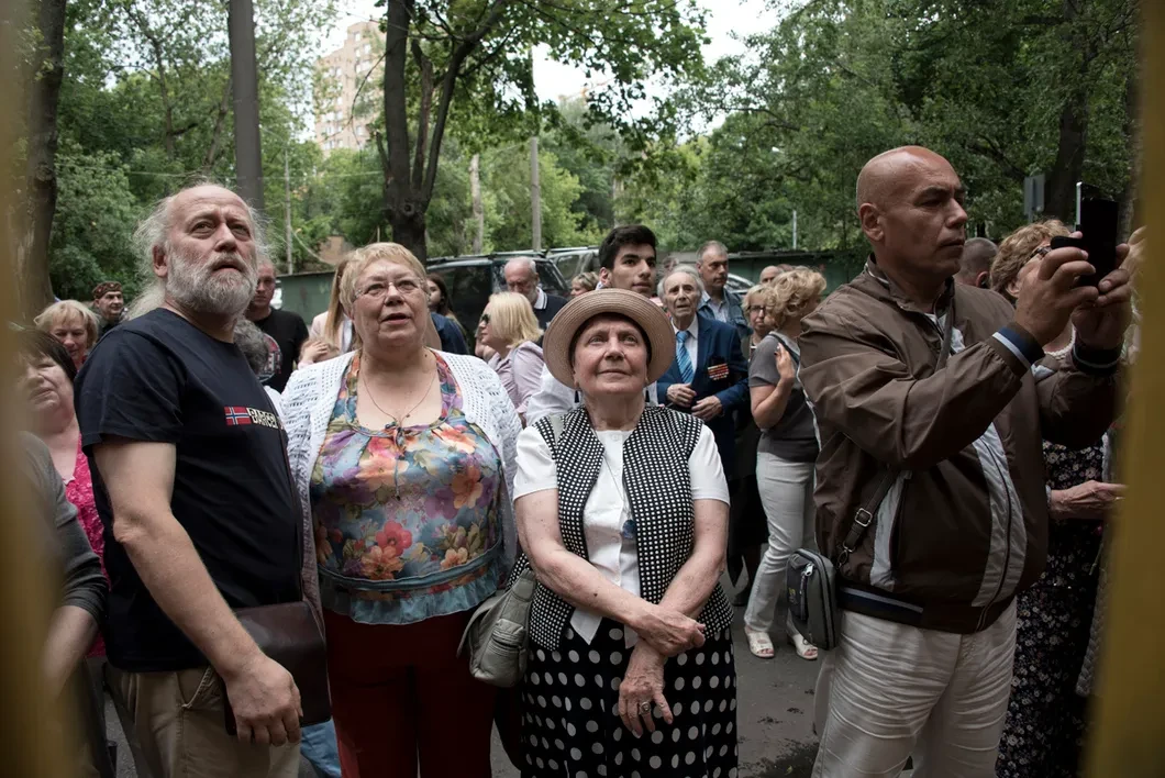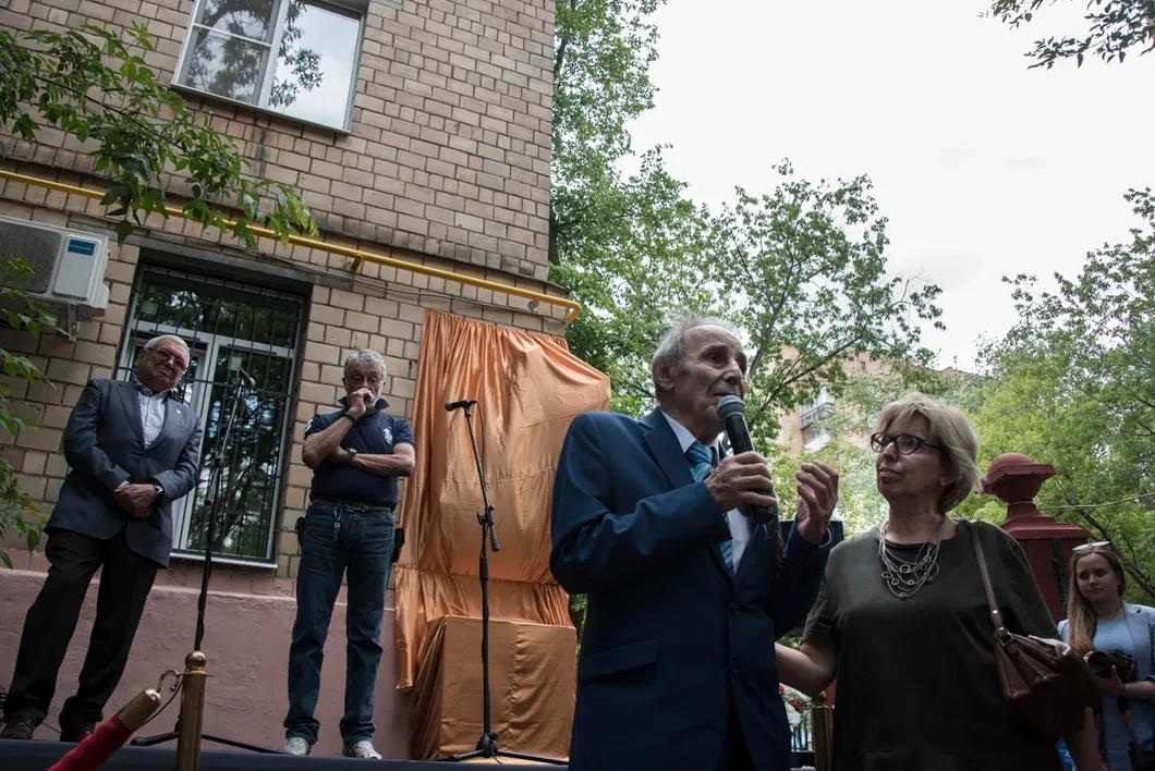 Наверное, поэтому торжества в честь Васильева никогда (и в этот раз тоже) не грешили патриотическим пафосом. Открытие прошло почти по-домашнему. Жильцы загодя убрали от стены дома автомобили. Пришли поэт Евгений Бунимович, правозащитник Алексей Симонов, писатель Евгений Сидоров. Вел все это обозреватель «Новой» Юрий Рост. Помянули Васильева, выпили по сто грамм. Оркестр школы Казарновского играл знаменитую «Рио-риту». Вроде бы, не очень мемориальная вещь, но именно она звучала перед самым началом войны. Выпускники этого года читали отрывки из Васильева и танцевали вальс.