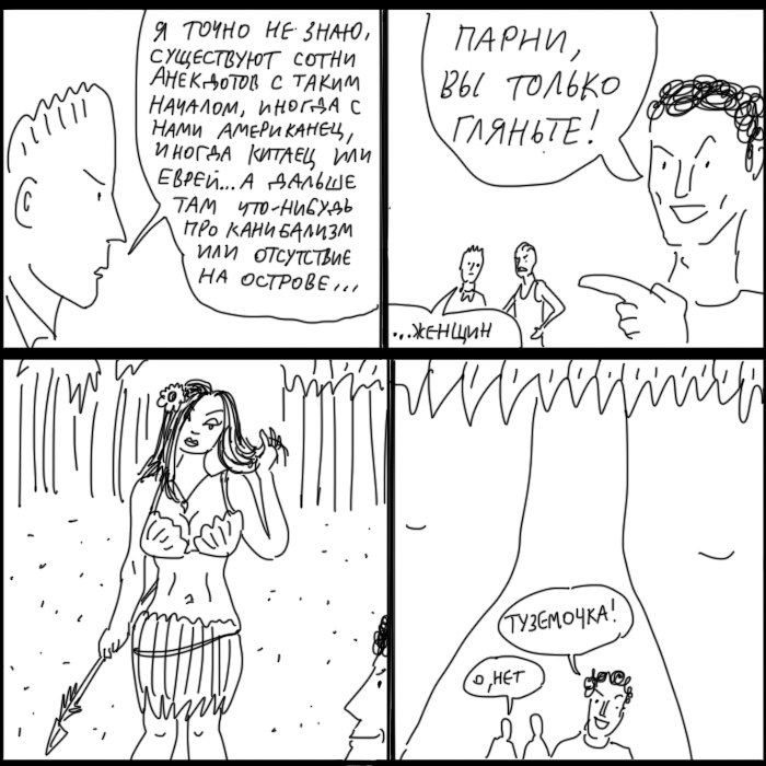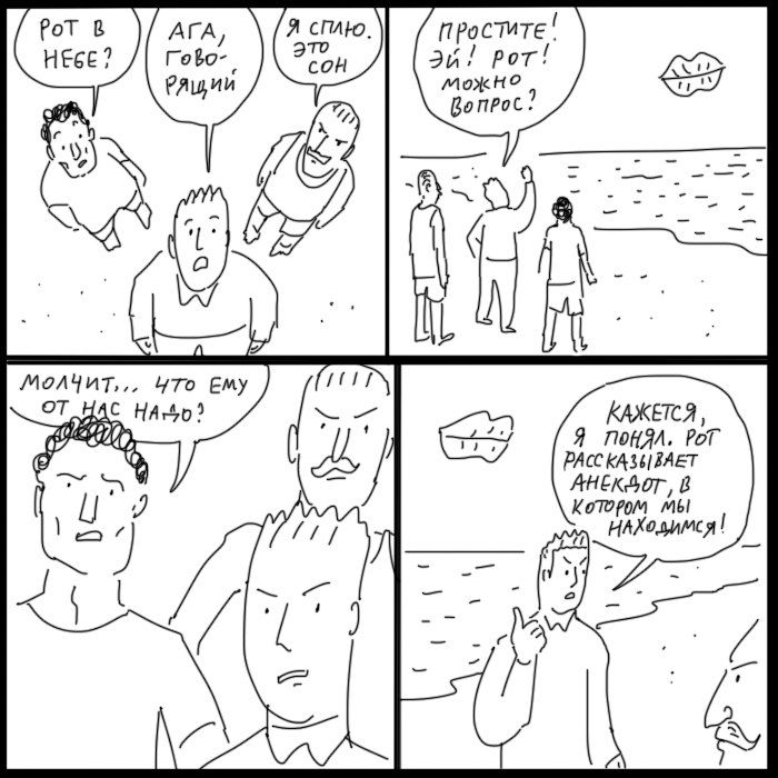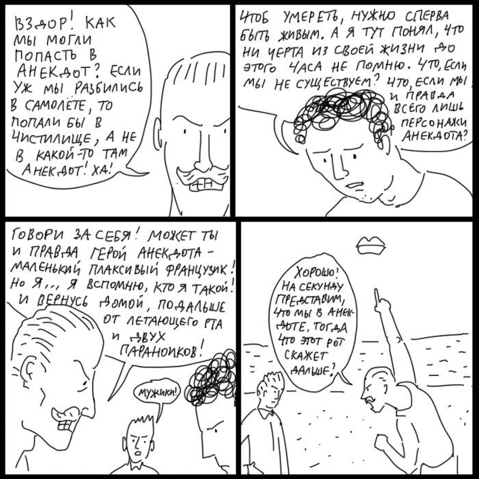 Главный герой пытается выбраться из мира анекдотов и отомстить их рассказчикам. Прочитать весь комикс можно в паблике Дюрана. Осторожно: это надолго!