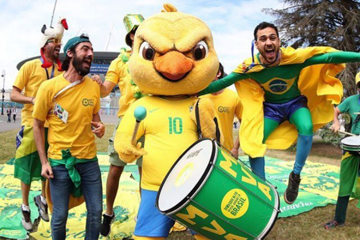 В Петербурге 22 июня проходит матч чемпионата мира по футболу между сборными Бразилии и Коста-Рики. В Петербурге их уже ожидали тысячи болельщиков, превратив центр города и Крестовский остров в латиноамериканский карнавал. «Бумага» собрала фотографии и видео с бразильцами и костариканцами — в шапках-ушанках, костюмах Пикачу и бразильской канарейки, с флагами и барабанами и верхом на динозаврах.