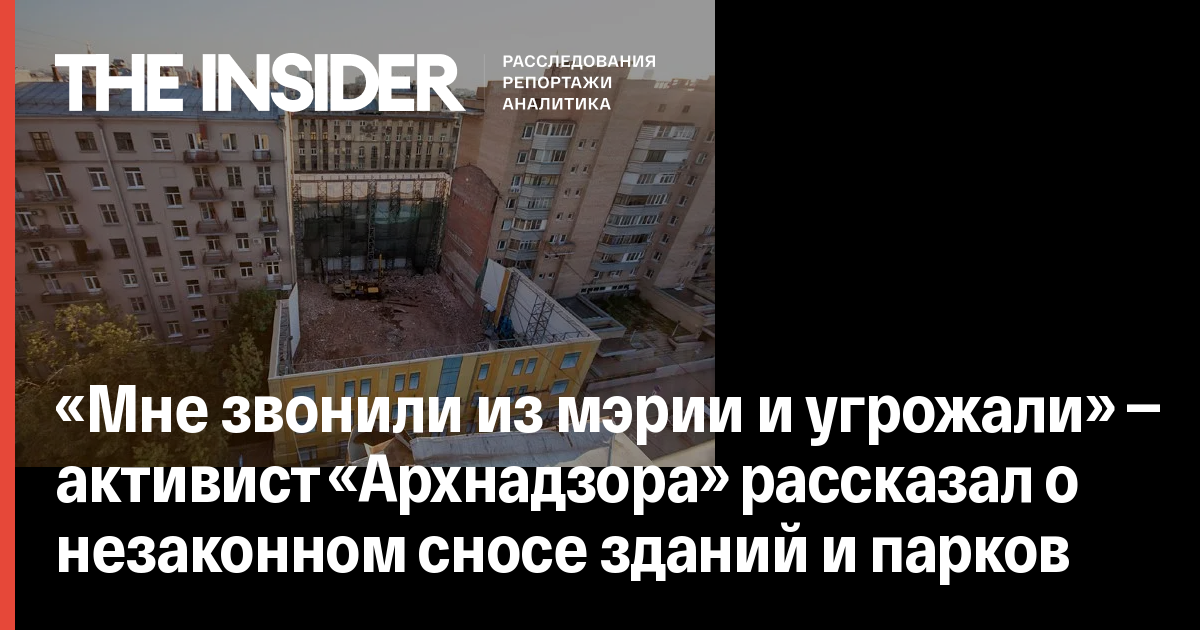 «Мне звонили из мэрии и угрожали» — активист «Архнадзора» рассказал о незаконном сносе зданий и парков