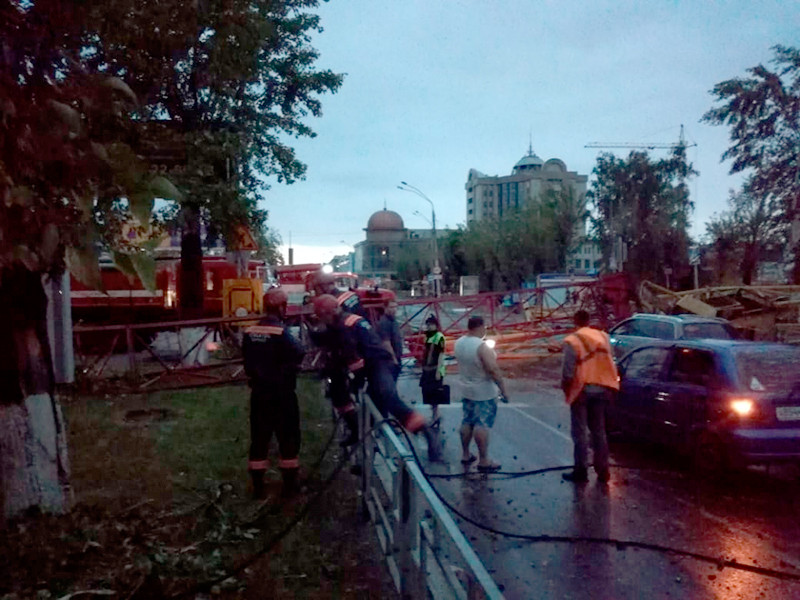 Ветром также сломило стрелу строительного крана на проспекте Ленина, его оператор получил травмы и скончался.