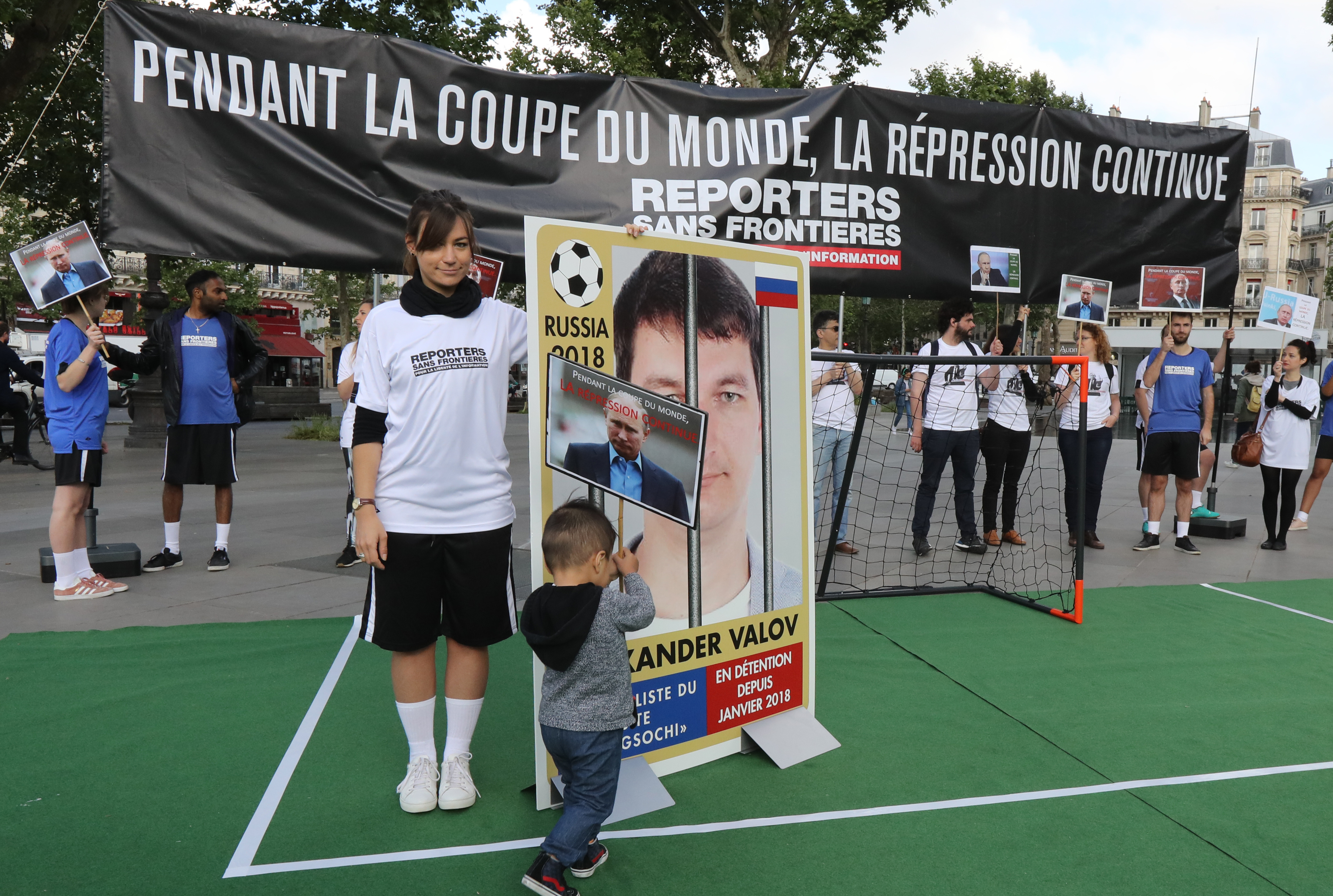 13 июня «Репортеры без границ» провели на площади Республики в Париже акцию под названием «Во время Чемпионата мира репрессии продолжаются». Организаторы акции принесли на площадь Республики большие фотографии семи российских журналистов и блогеров, которые либо приговорены к тюремным срокам и отбывают наказание, либо дожидаются суда под стражей. «Репортеры без границ» на протяжении всего Чемпионата мира по футболу будут проводить акции против преследования в России журналистов. Кампания направлена на защиту семи журналистов и блогеров, среди которых и главред сайта «БлогСочи» Александр Валов.