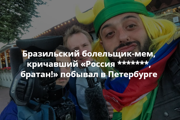 Бразильский болельщик и журналист Томер Савойя, находясь в Ростове-на-Дону, прокричал на камеру «Россия — ******* (офигенна — прим. «Бумаги»), братан!» После этого Савойя стал мемом.