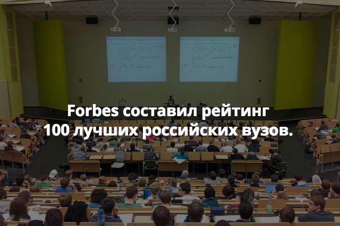 Издание Forbes составило рейтинг 100 лучших российских вузов. Учебные заведения проанализировали по 10 критериям, включая качество образования, качество выпускников и фактор, учитывающий «элитность» учебного заведения и долю предпринимателей в общем количестве выпускников.
