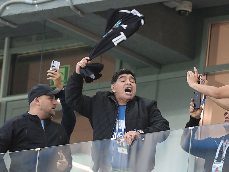 На ЧМ-2018 Марадона посетил все три игры сборной Аргентины на групповом этапе - с Исландией (1:1), Хорватией (0:3) и Нигерией (2:1). В 1/8 финала Аргентина 30 июня в Казани сыграет с Францией.