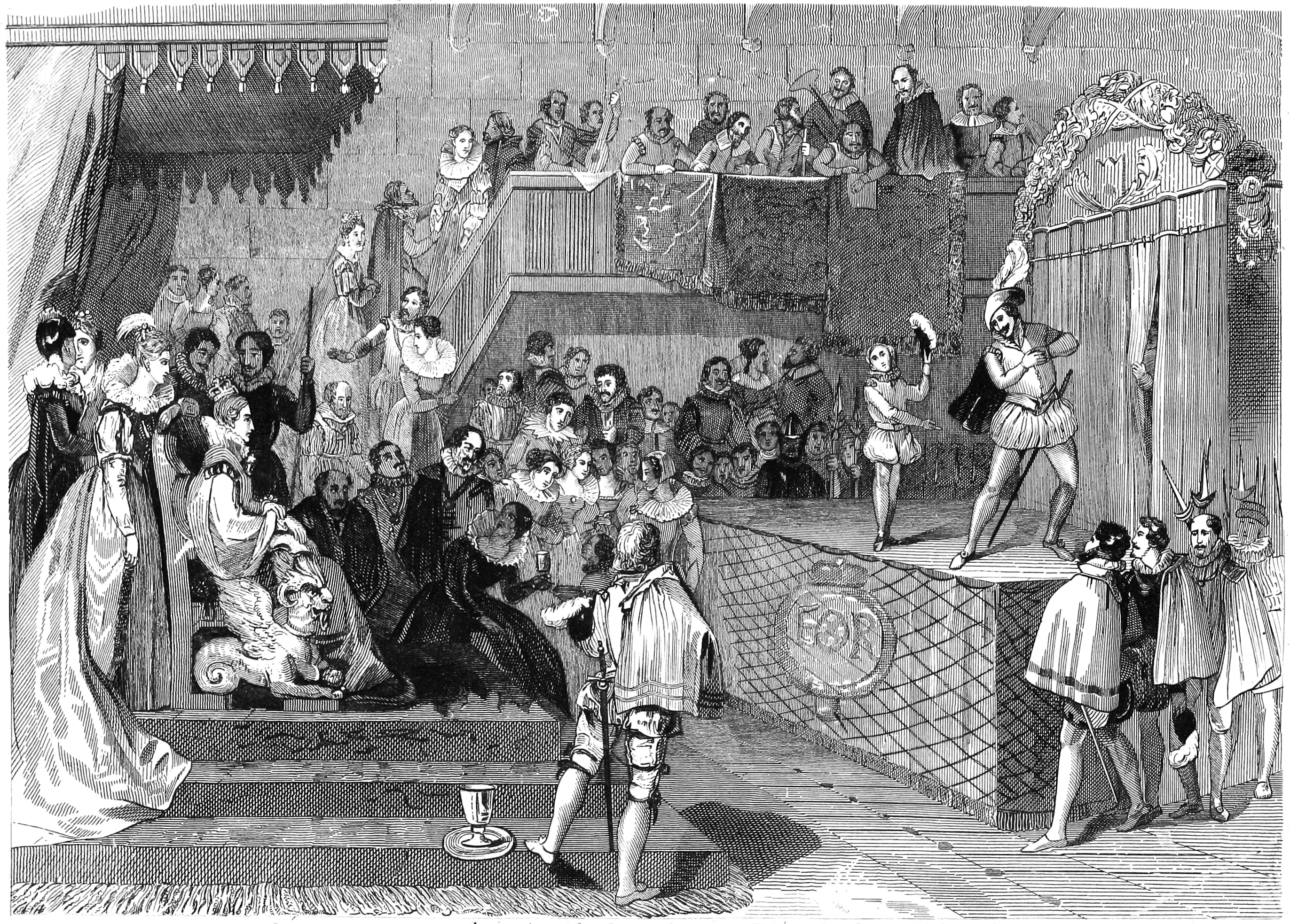 В четвертой сцене первого акта во дворец кардинала Йоркского Вулси прибыл король со свитой в маскарадных костюмах. Авторская ремарка: "За сценой трубы, барабаны и пушечные выстрелы". В этом месте для пущей убедительности выстрелила настоящая пушка. От этого выстрела и приключилась беда.