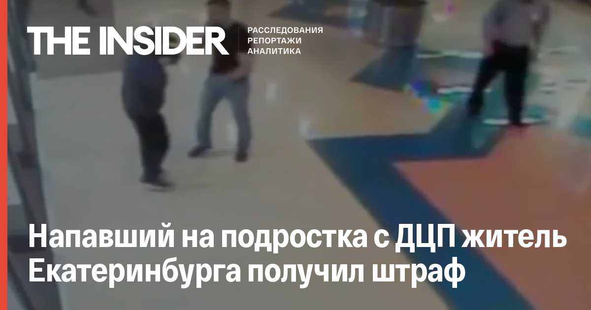 Житель Екатеринбурга Александр Соловьев заплатит штраф в 15 тысяч рублей за нападение на подростка с ДЦП Романа Валитова в торговом центре «Алатырь». Об этом сообщила юрист правозащиты «Открытой России» Юлия Федотова.