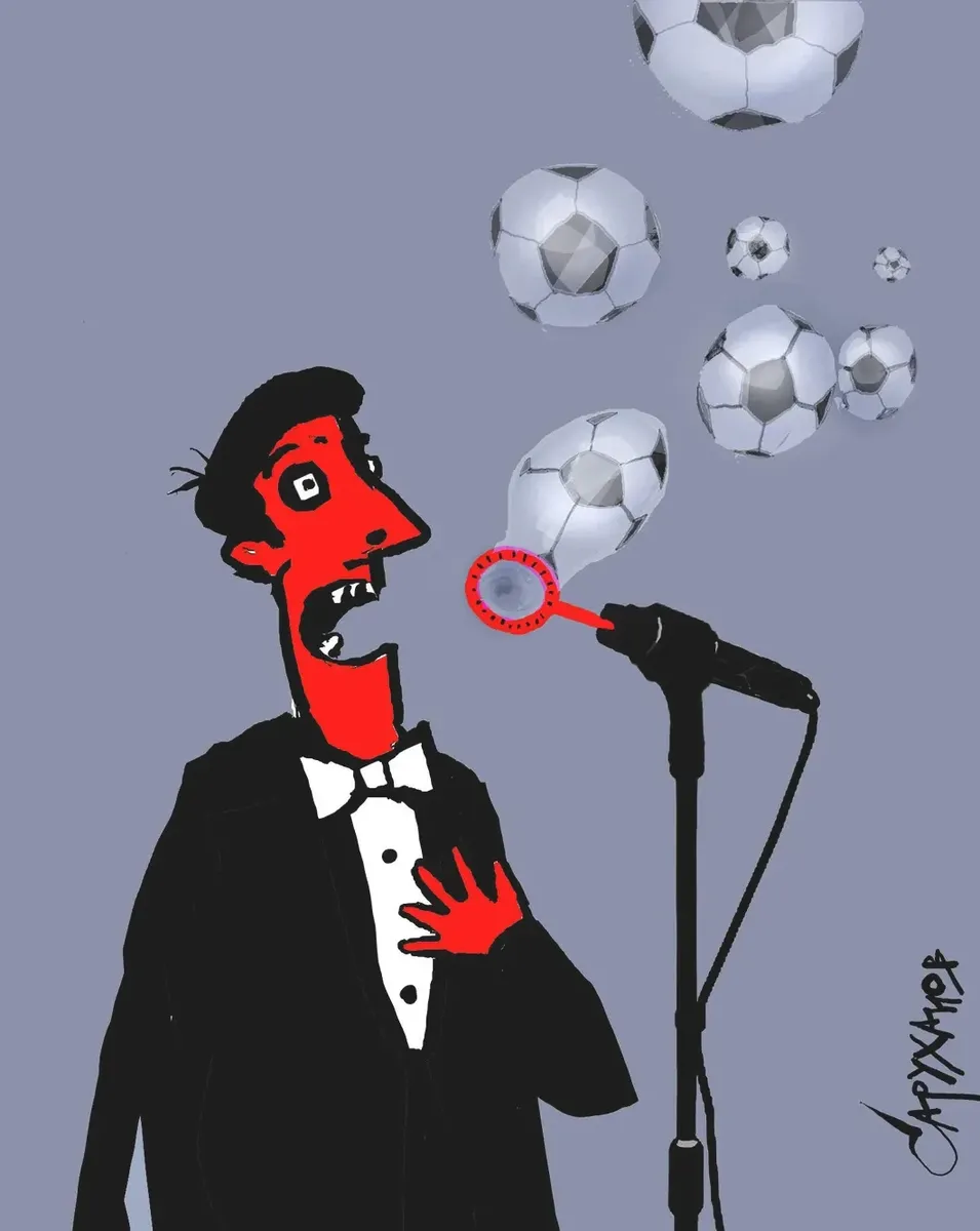 Лексикон поп-звезд, поющих на футбольную тему, укладывается в одну-две строки: футбол, вперед, победа, ура, гол, наши, успех, команда, оле-оле. Олег Газманов — у которого мысли как скакуны, помните? — набрел на неожиданную рифму «футбол-гол». Еще более оригинально поступил Александр Малинин. Он записал переделку песни Moskau немецкой группы Dschinghis Khan: «Москва, Москва, это наш чемпионат!». Оригинал вышел в 1979-м, накануне Олимпиады, и сразу в народ пошла переделка, которая затмила оригинал: «Москва, Москва… Закидаем бомбами, заровняем танками, о-хо-хо-хо-хо! Не добили в сорок пятом, так добьем в восьмидесятом, будет вам Олимпиада, а-ха-ха-ха-ха!» Конечно, Малинин не имел в виду ничего дурного, но ассоциации неизбежно возникают, не могут не возникать. Хочется подпеть Малинину: «Это наш чемпионат, а-ха-ха-ха-ха». Мысль о том, чтобы исполнить такое с трибуны в разгар матча отпугнет даже самого агрессивного сумасшедшего.