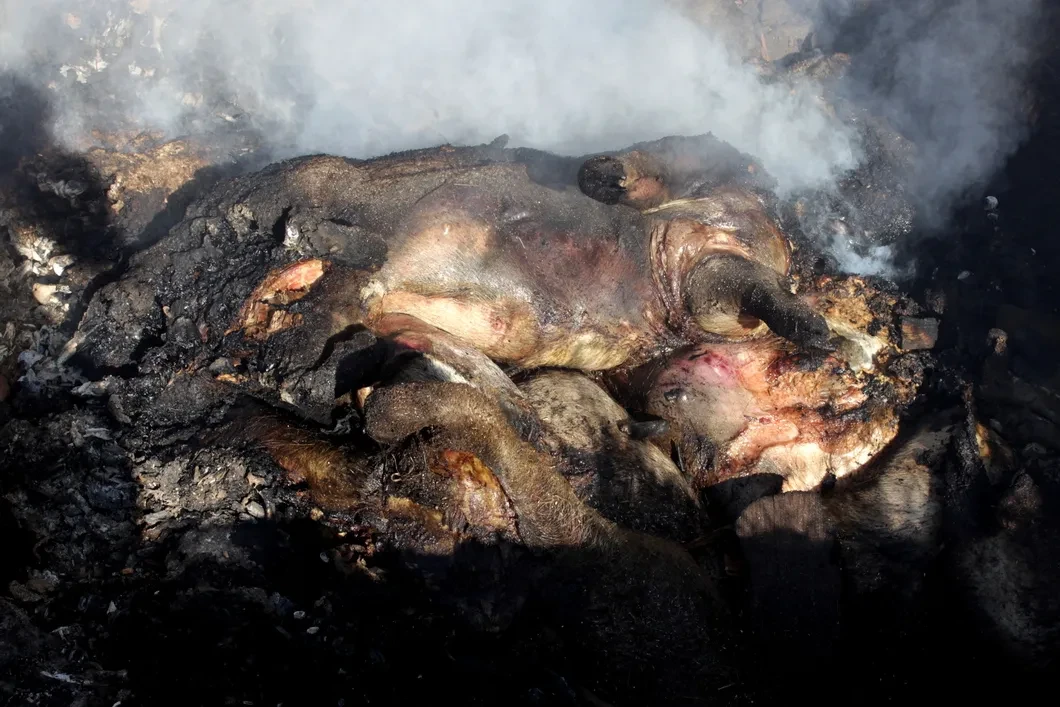 «В каждом дворе свинью держали. Мы только скотиной живем», — говорит местная пенсионерка Валентина. У нее была свиноматка и 10 месячных поросят. «Приехали ветеринары, говорят: мужика ищи, усыплять будем. А где я в нашей деревне мужика возьму? Я зубы сцепила, сама держала маленьких, они кололи. Привезли грузчиков. Стали туши в телегу с трактором бросать. Я в дом убежала, не могла смотреть».