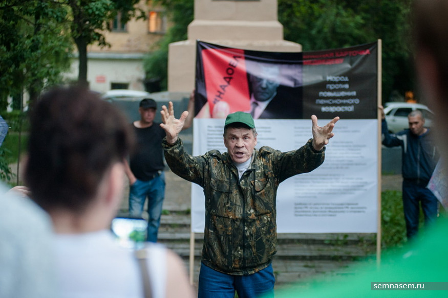 — Сегодня здесь собрались люди с разными взглядами на жизнь, на политику, на футбол. Нас объединила власть, когда плюнула нам в физиономию. Что такое повышение пенсионного возраста? У каждого мужчины из кармана вынут миллион рублей, у каждой женщины — миллион шестьсот. Но это же наши деньги, которые мы отчисляли с нашей зарплаты! Вопрос повышения пенсионного возраста должен решаться только через референдум, — обратился Ананьин к собравшимся.
