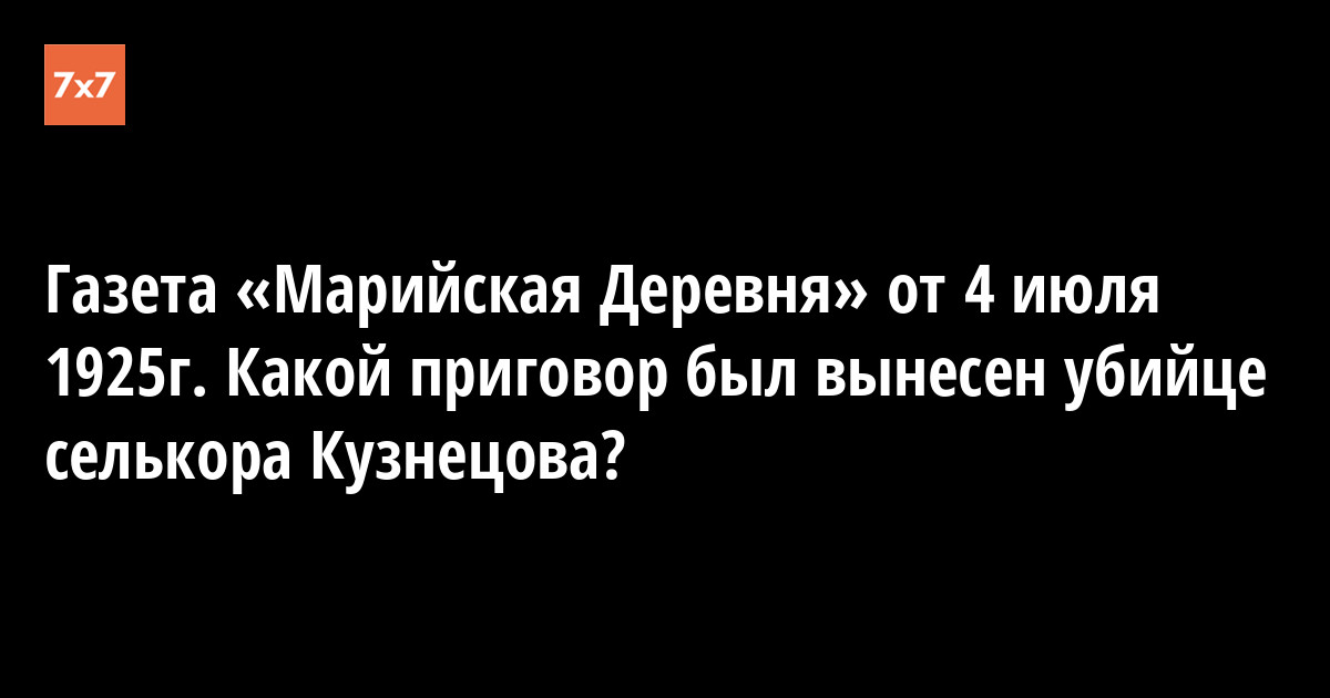 Газета «Марийская Деревня» от 4 июля 1925г. Какой приговор был вынесен убийце селькора Кузнецова?