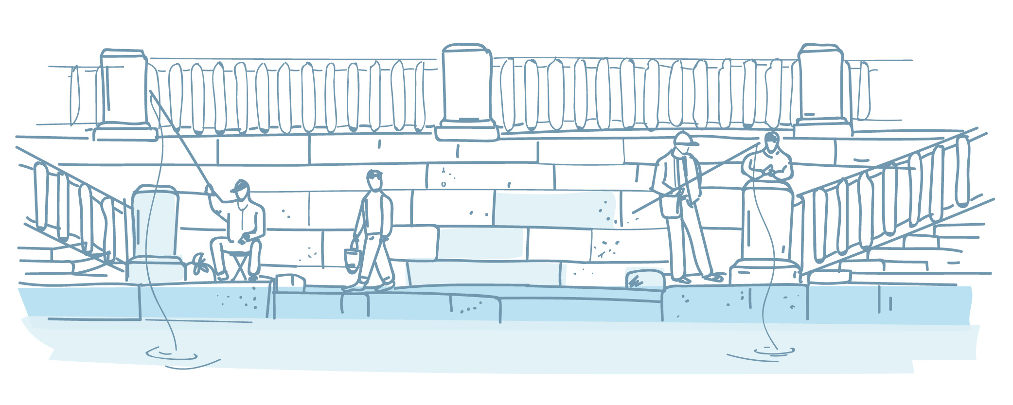 Рыбачить в самом центре города. И иногда вытаскивать огромного окуня