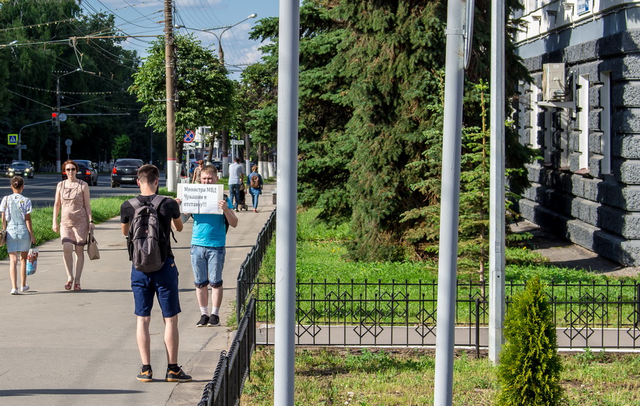 Гражданский активист Андрей Лобанов провел 6 июля одиночный пикет с требованием отставки министра внутренних дел Чувашской республики несмотря на то, что 5 июля его задержали за пикет с плакатом «Остановим пытки в отделах полиции», сообщил корреспондент «7x7».