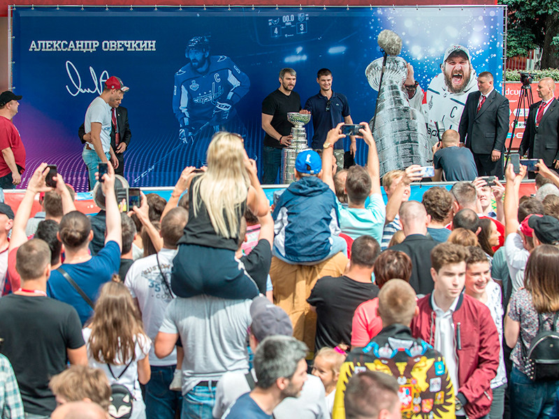 Нападающий клуба Национальной хоккейной лиги "Вашингтон" россиянин Александр Овечкин представил Кубок Стэнли болельщикам в столичной фан-зоне чемпионата мира по футболу на Воробьевых горах. Несколько тысяч болельщиков выстроились в очередь, чтобы посмотреть на трофей, сообщает ТАСС.