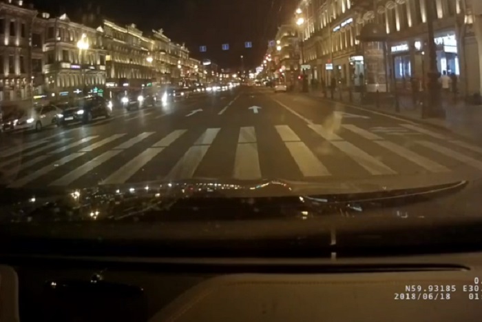 Женщину сбили в ночь на 18 июня на Невском проспекте в зоне регулируемого пешеходного перехода. Судя по видео, опубликованному в группе «ДТП и ЧП», водители ехали наперегонки.
