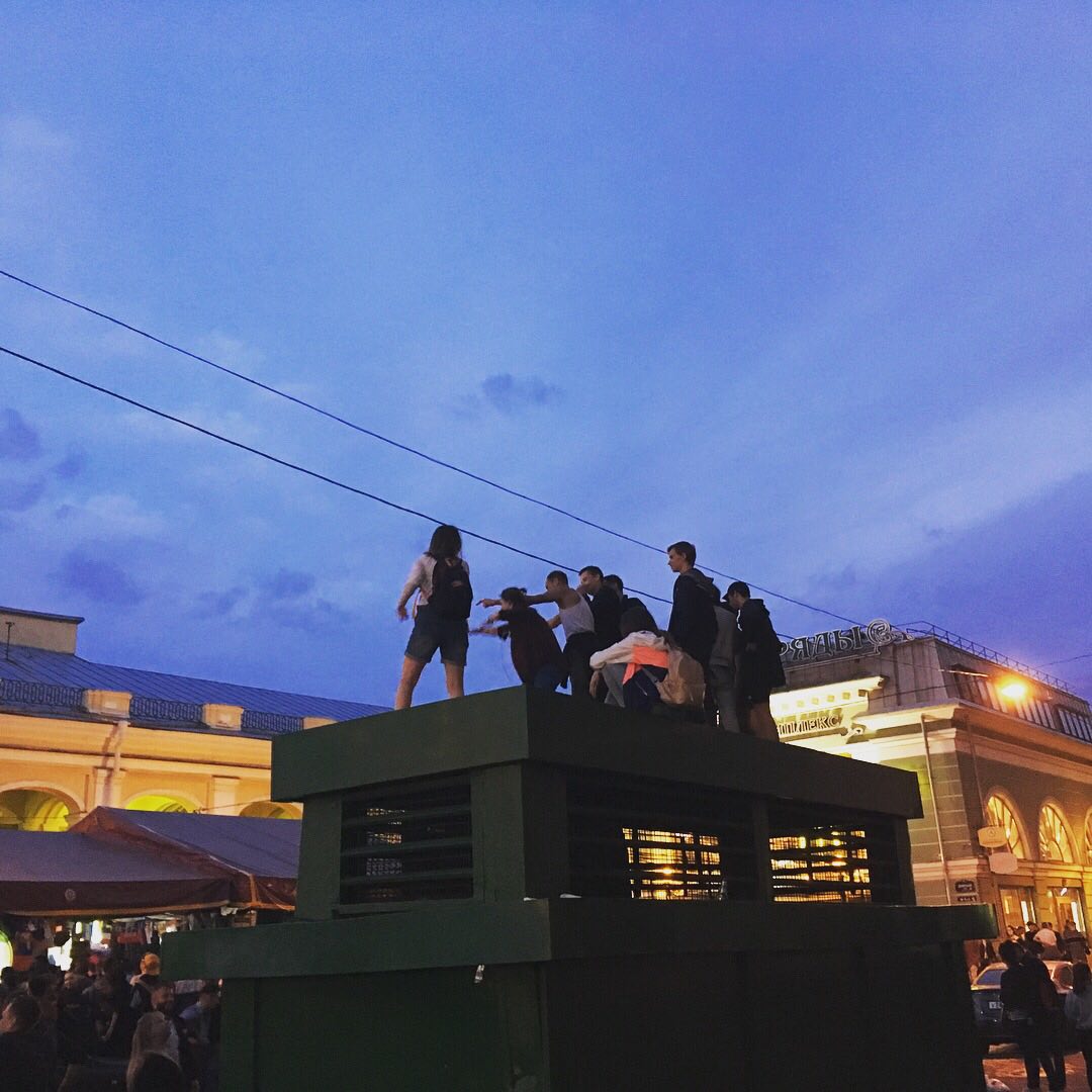 С Думской соревнуется Гостиный Двор. В баре на втором этаже универмага не протолкнуться. Внизу на остановках и на скамейках застыли те, кто не смогли попасть в заведение, но ждали развязки. Вдоль тротуаров прохожие стоят, задрав головы. «Ой, ладно, всё равно ни фига не видно», — с досадой сказала одна из девушек и увела подругу.