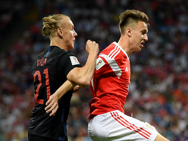 Домагой Вида в матче ЧМ-2018 против сборной России Фото: twitter.com/hns_cff Уж сколько раз твердили миру, что спорт вне политики — но нет-нет да и появится новый повод для вмешательства дисциплинарного комитета ФИФА. На этот раз отличился защитник сборной Хорватии Домагой Вида, сразу после победы своей команды в четвертьфинале мундиаля записавший видео под лозунгом «Слава Украине!».