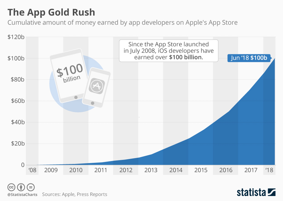10 июля 2008 года было положено начало золотой лихорадке программистов 2010-х — Apple представила пользователям магазин приложений App Store. Когда один из самых ярых оптимистов — глава компании Стив Джобс анонсировал новый продукт, он говорил о потенциальных тысячах приложений для iPhone и iPod. Но успех App Store превзошел все возможные ожидания - сегодня площадка объединяет уже более 2 млрд приложений, а разработчикам уже удалось заработать на приложениях для App Store более $100 млрд. И это не единственные впечатляющие итоги работы App Store – недавно аналитический сервис App Annie также опубликовал рейтинг самых популярных приложений для iOS.