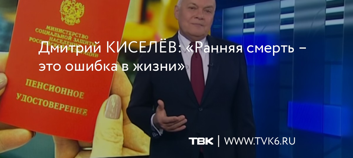 Может, и нам – мужикам в России – пригодится эта перефразированная формула: „Ранняя смерть – это ошибка в жизни“? Бывает и по-другому, но это не значит, что мужчины имеют право на фатальные ошибки. А они известны», – заключил Киселёв.