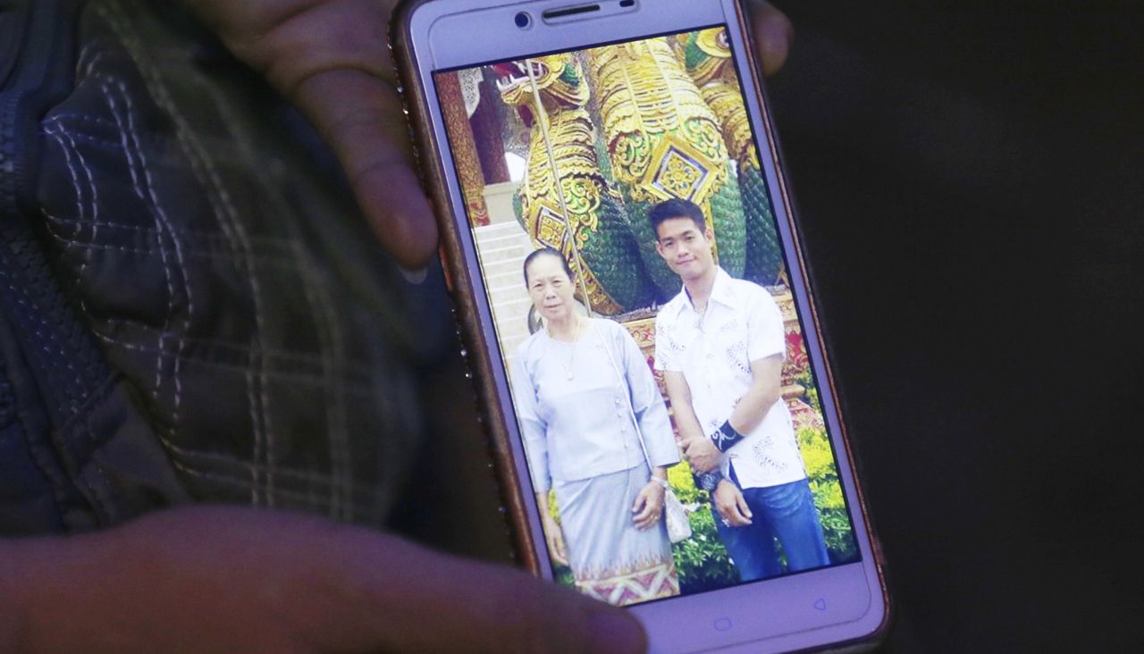 Sakchai Lalit / AP / Scanpix / LETA Тетя Еккапола Чантавонга показывает фотографию тренера с его бабушкой. 4 июля 2018 года