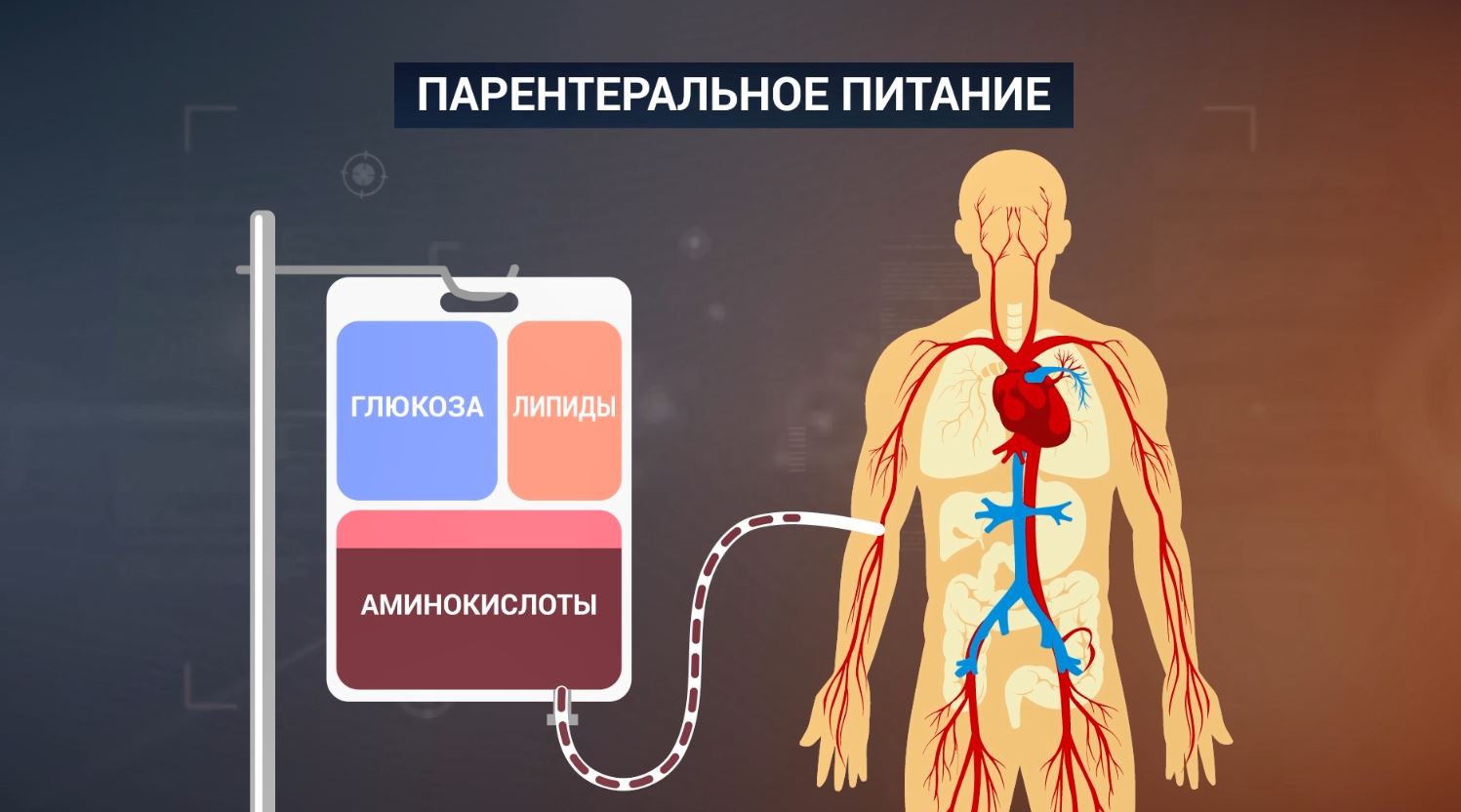 Такое поддержание жизни врачи называют парентеральным питанием – это способ введения питательных веществ в организм в обход желудочно-кишечного тракта. Делают это через любую периферическую вену конечностей. Во многих странах применяют методику «все в одном», когда все ингредиенты смешиваются в одном пакете.