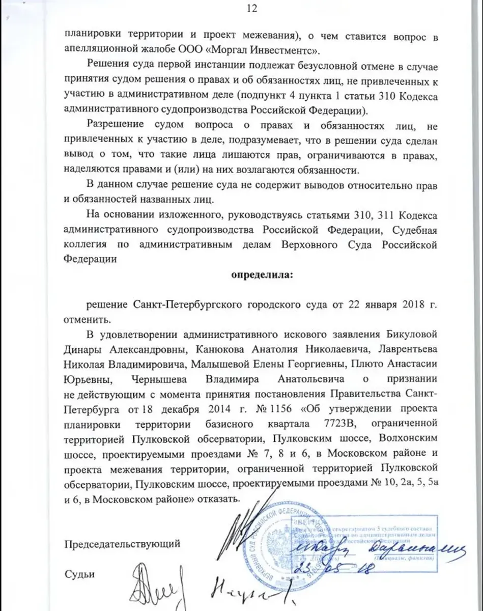 Огласив решение по существу 23 мая, Верховный суд РФ обнародовал его определение лишь в первую неделю июля — нарушив установленный законом срок (не более месяца). Ознакомившись с мотивировочной частью, градозащитники обнаружили немало поводов для обжалования вердикта.