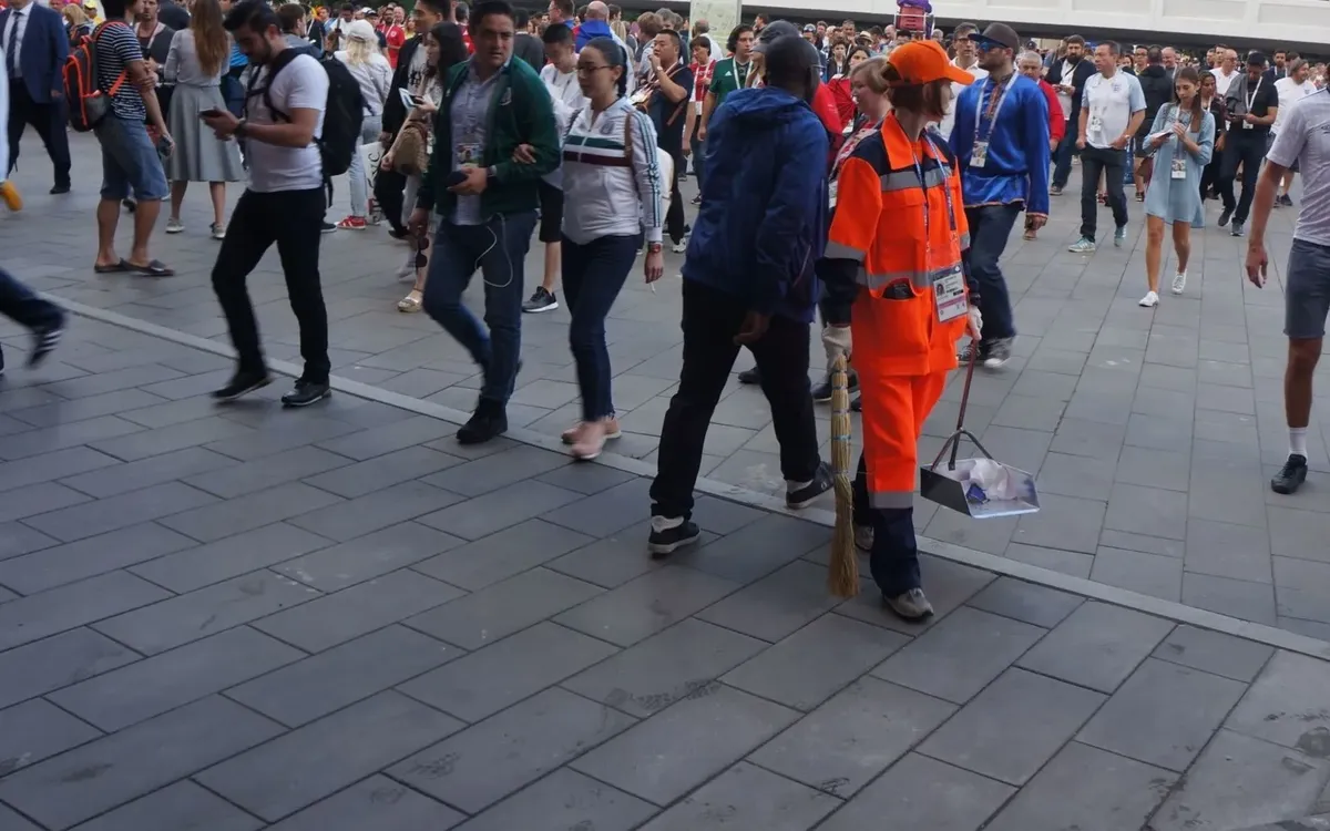 Корреспондент «Новой» подметала территорию у стадиона «Лужники» перед матчем Англия — Хорватия