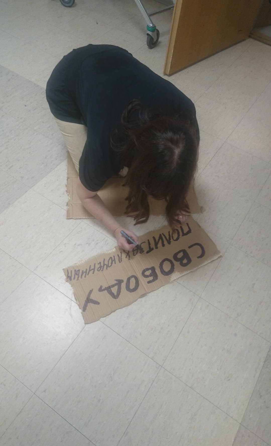 Прибыв в Хельсинки, активисты решили изготовить новые плакаты самостоятельно.