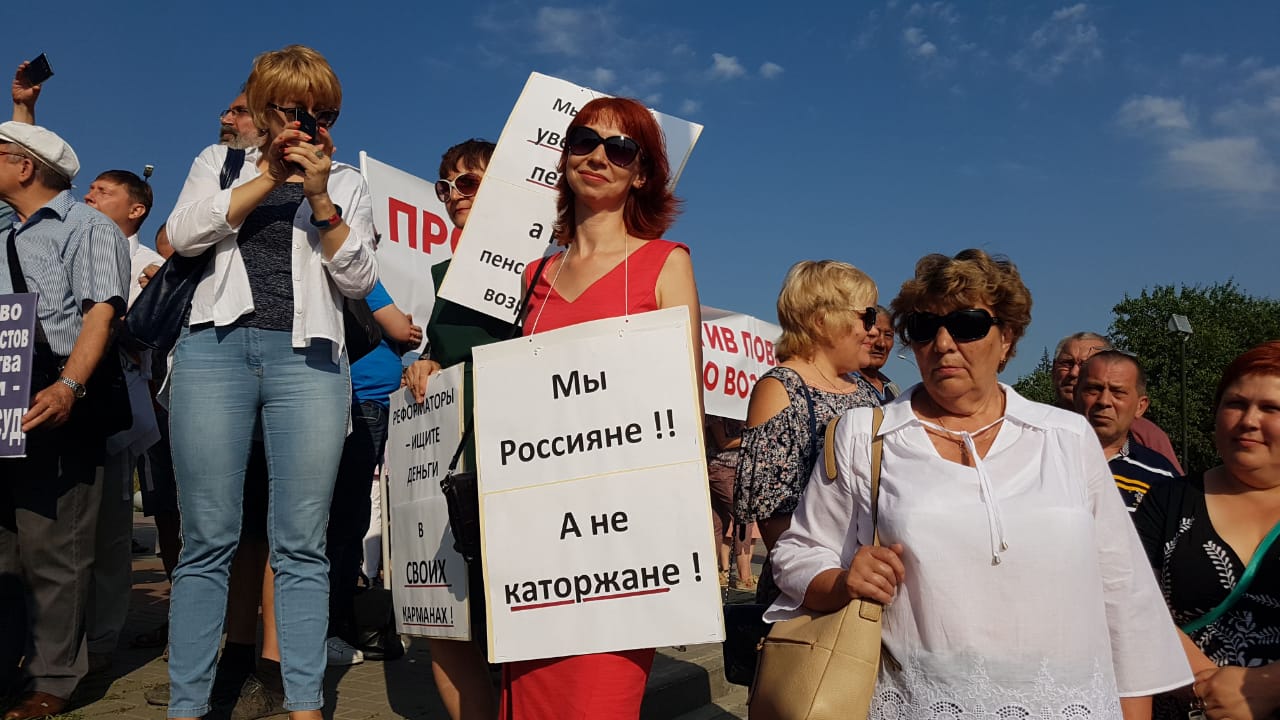 Люди держали в руках плакаты "Долой правительство за издевательство над народом", "ЕдРо в помойное ведро", "Почему не 90?". Выступающие предложили ввести различные подходы к возрасту выхода на пенсию в европейской части страны, на Кавказе и в Сибири. Прозвучала статистка, что наиболее длительная продолжительность жизни в республиках Северного Кавказа и в Москве, в то время, когда около половины сибиряков не доживают до 60 лет.