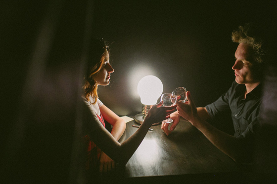 Вы входите в мрачный зал с четырьмя другими зрителями и становитесь на светящуюся точку лицом к занавесу. Ткань медленно поднимается, перед вами — ваш сегодняшний спутник (или спутница). Он или она отводит вас в полутемную кабинку, предлагает виски (можно отказаться) и начинает расспросы: чем вы занимаетесь, к чему стремитесь, чего боитесь, есть ли у вас партнер и если да, то как вы оцениваете вашу совместную жизнь. Вы тоже можете спросить его/ее о чем угодно и рассчитывать на честный ответ.