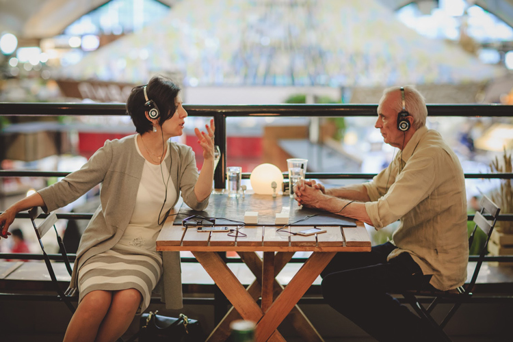Общую нить разговора почти невозможно поймать — ты всецело сосредоточен на том, что говорит «суфлер» сию секунду. Повторять за ним нужно быстро, пока партнер не начал отвечать. Так что, если вы не видели фильмов «Жить своей жизнью» Жан-Люка Годара, «Костюмер» Питера Йетса, «Женщина не в себе» Джона Кассаветиса и не читали «Кукольный дом» Ибсена (оттуда Rotozaza позаимствовали диалоги), вы вряд ли догадаетесь, о чем говорят ваши герои и что вообще связывает эти сцены между собой.