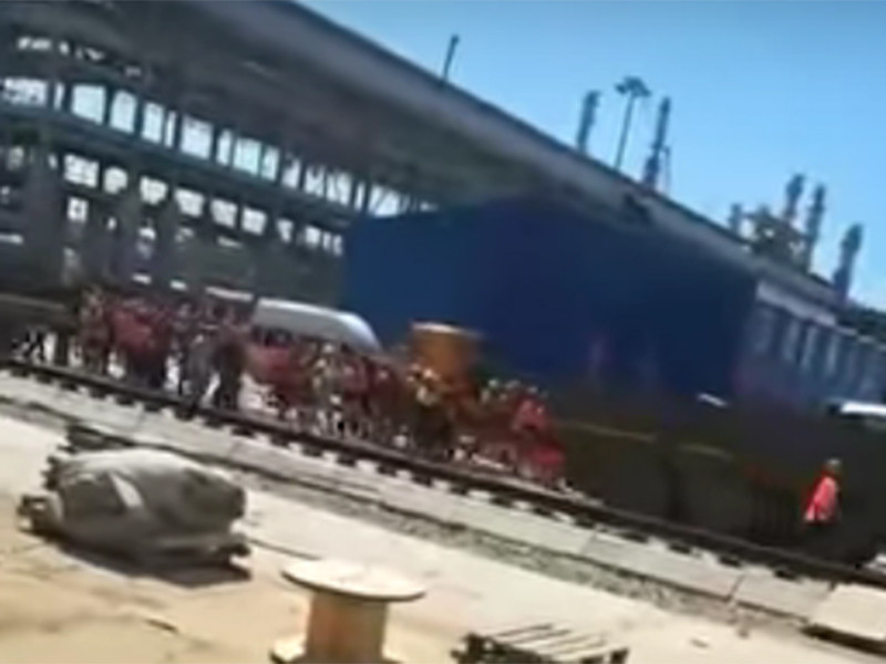Сообщалось, что взбунтовались рабочие, занятые на строительстве завода "ЗапСибНефтехим" на Тобольской промплощадке компании "Сибур". Сначала недовольные выломали двери автобуса и касками расколотили джип одного из строительных начальников, потом начали громить технику.