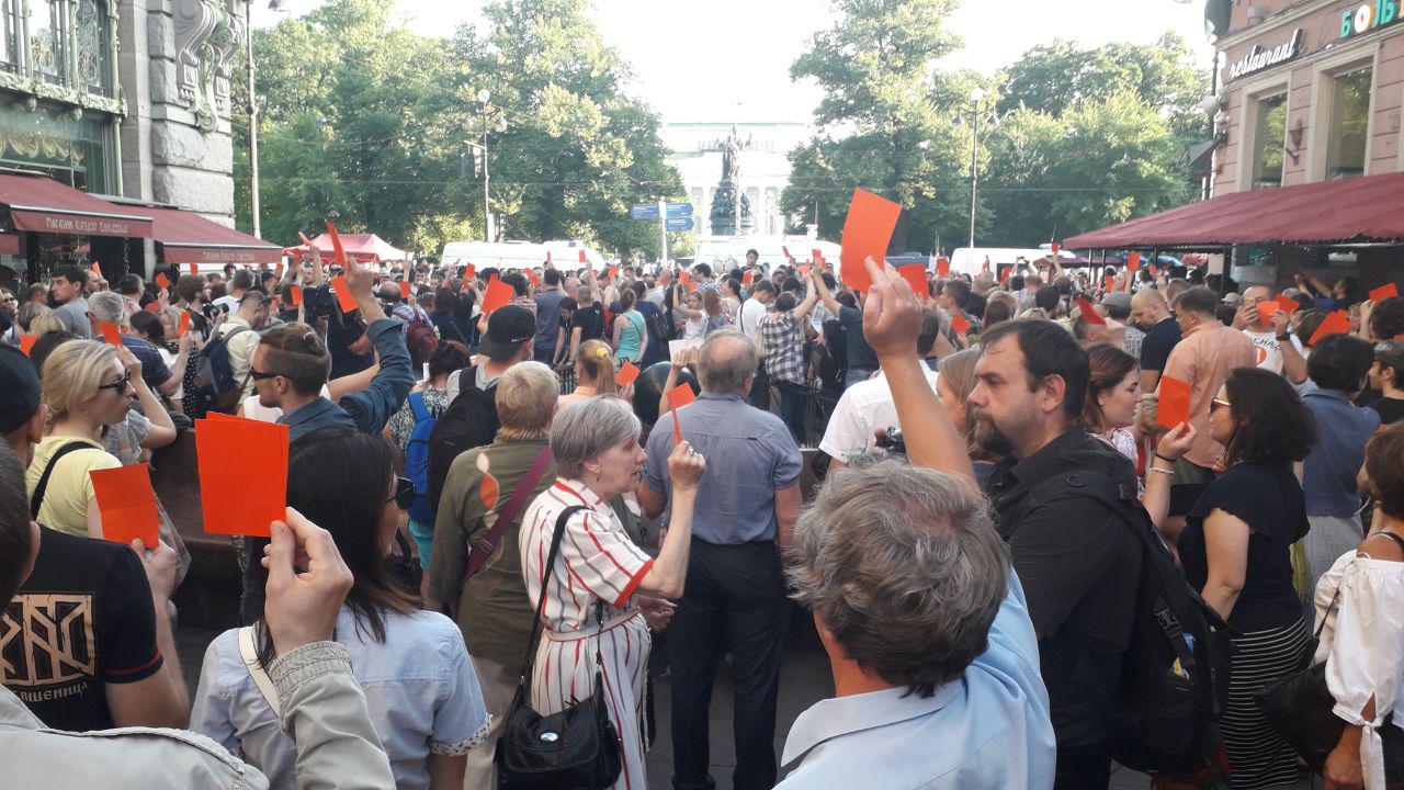 На Малой Садовой прошел митинг против повышения пенсионного возраста. 150 человек подняли красные карточки. Обновлено