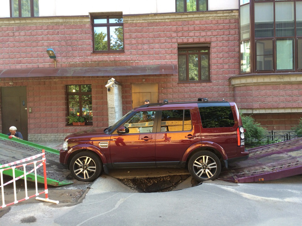 Под автомобилем Land Rover Discovery во дворе дома 5 по Карташихиной улице провалился асфальт. Об этом сообщают очевидцы в группе «ДТП и ЧП».